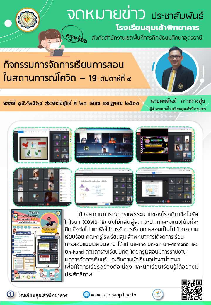 การจัดกิจกรรมการเรียนการสอนในสถานการณ์โควิด 19 สัปดาห์ที่ 4